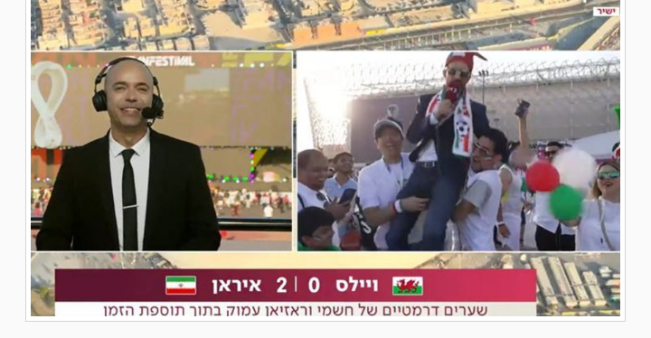 ولم يراعِ المشجعون أي حرج في علاقة بلادهم الرسمية السيئة مع إسرائيل، وأصروا على توشيح المراسل بعلم بلادهم، بينما كان الصحفي الإسرائيلي في غاية السعادة وهو ينقل أجواء ما بعد المباراة التي فازت فيها إيران على ويلز بهدفين دون رد، ضمن الجولة الثانية من دوري المجموعات في نهائيات كأس العالم، معززة حظوظها في التأهل للدور الثاني.