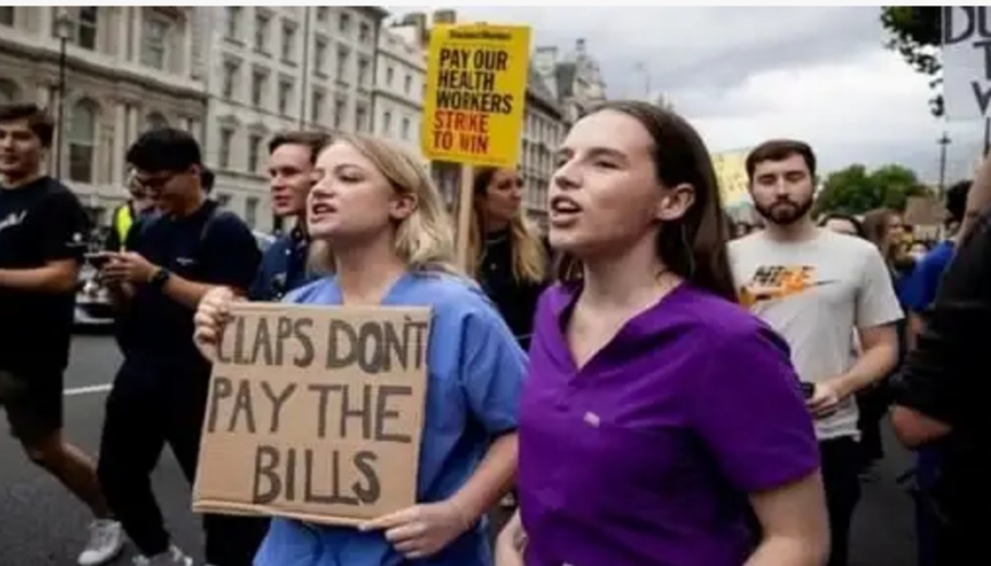وأشارت الصحيفة إلى أن أكثر من 100 ألف ممرض وممرضة يشاركون في الإضراب، في 76 مشفى، ومنظمات NHS، مُطالبين برفع الأجور بنسبة 19 في المئة، الأمر الذي قوبل بالرفض من قبل رئيس الوزراء ريشي سوناك، الذي وصف المطالب بـ”غير المعقولة”.