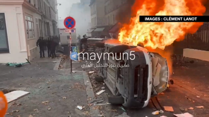 منذ الفجر ، الأكراد يحرقون سيارات ويغلقون شوارع في باريس و يدمرون كل شيئ ، الشرطة الباريسية لا تنام .