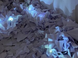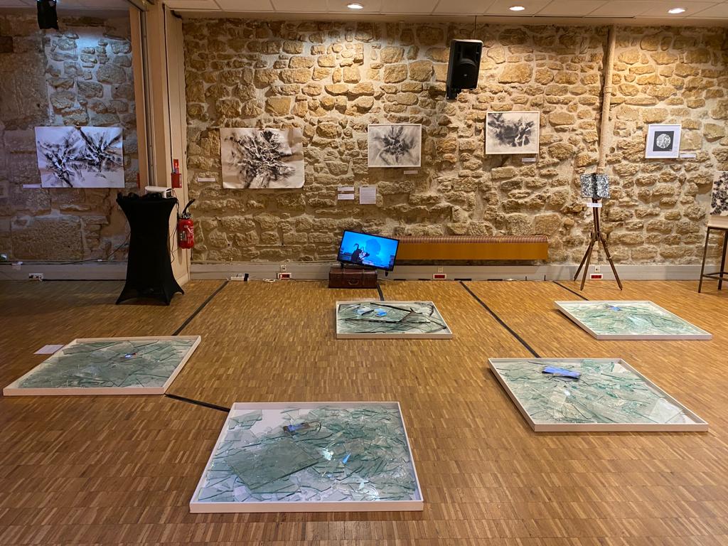ولدت تركيبات الفنانة التشكيلية، التي تجمع بين الزجاج المكسور والورق المطوي والممزق والفيديو والوثائق الصوتية، في أعقاب هذه المأساة الأخيرة والمآسي المتتالية في لبنان.