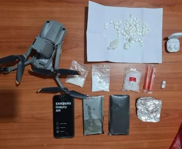 وأضاف, “بعد الكشف عليها، تبيّن أنّها ذات لون رمادي من نوع “DJI”، وتبيّن وجود كيس شفّاف مثبّت عليها بلاصق, وبتفتيش الكيس ضُبِط في داخله 74 حبّة مخدّرة، ومادّة بيضاء اللون، هاتف خلوي يحتوي على شريحة خط، وحافظة بيانات “USB” وسمّاعات أذن “Earbuds”.