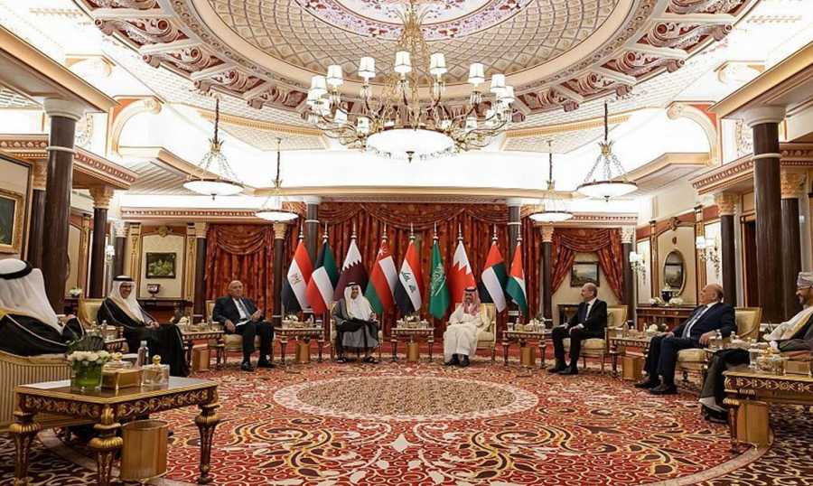“في إطار ما توليه المملكة العربية السعودية من حرص واهتمام بكل ما من شأنه خدمة قضايا أمتنا العربية، وتعزيز مصالح دولها وشعوبها، وبدعوة من الأمير فيصل بن فرحان آل سعود وزير خارجية المملكة العربية السعودية، وفي إطار التشاور والسعي لتنسيق المواقف وتوحيد الجهود تجاه عدد من القضايا ذات الاهتمام المشترك، عقدت في مدينة جدة بتاريخ 23 رمضان 1444هـ جلسة مشاورات غير رسمية على مائدة سحور استضافها وزير الخارجية، وشارك فيها وزراء خارجية دول مجلس التعاون لدول الخليج العربية، والمملكة الأردنية الهاشمية، وجمهورية مصر العربية، وجمهورية العراق”.