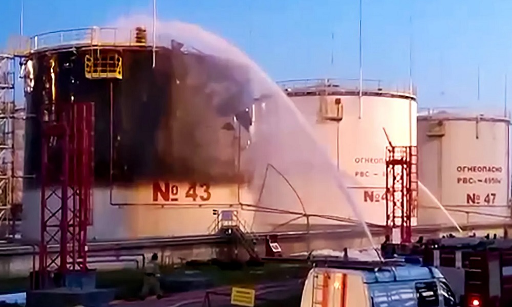 اندلع حريق في مصفاة نفط “إلسكي” جنوبي روسيا من جراء هجوم بطائرة مسيرة، هو الثاني خلال يومين.