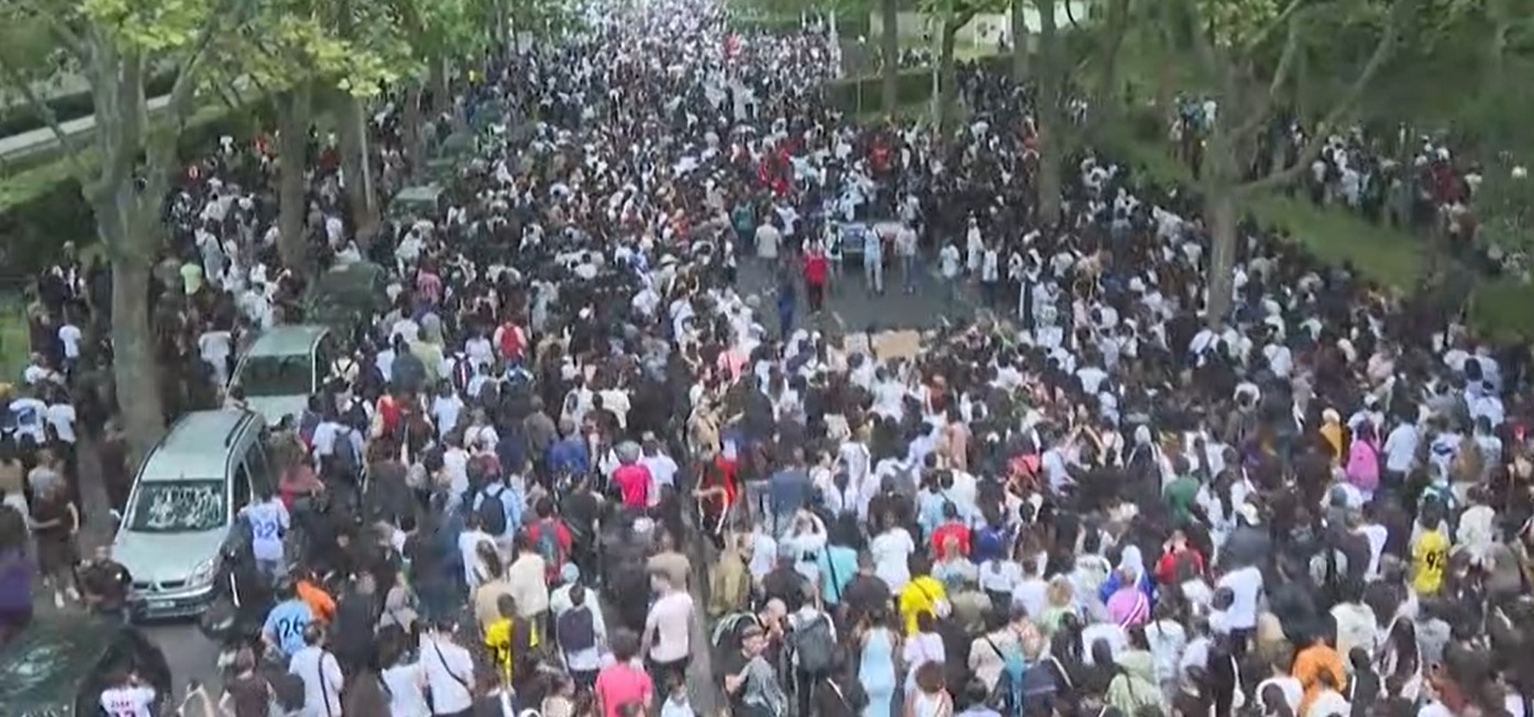 Des manifestations cet après-midi aux abords de la cité Pablo-Picasso, à Nanterre, pour rendre hommage à Nahel M., à l’occasion d’une marche blanche qui réunit la famille de l’adolescent ainsi que des habitants du quartier et des élus locaux et nationaux