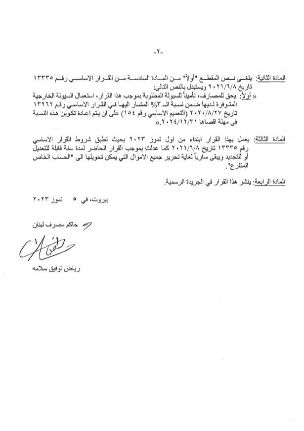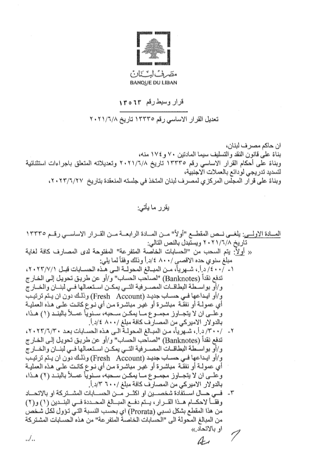 اعلن مصرف لبنان ببيان صادر عنه عن إجراءات استثنائية جديدة بخصوص سحوبات الدولار.