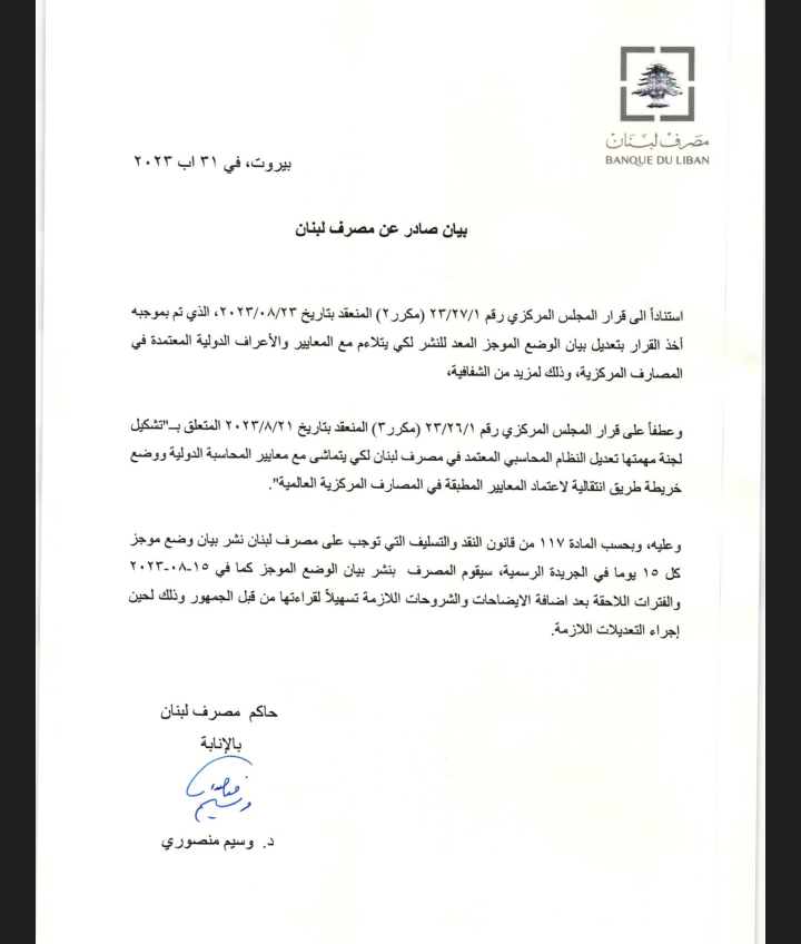 عن بيان الوضع الموجز.. هذا ما أعلنه مصرف لبنان