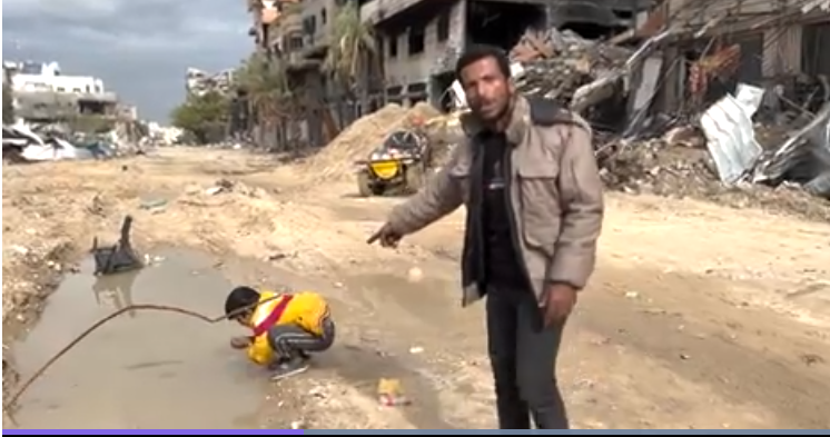 شاهد: طفل في غزة يشرب مياه الأمطار من على الأرض (فيديو)