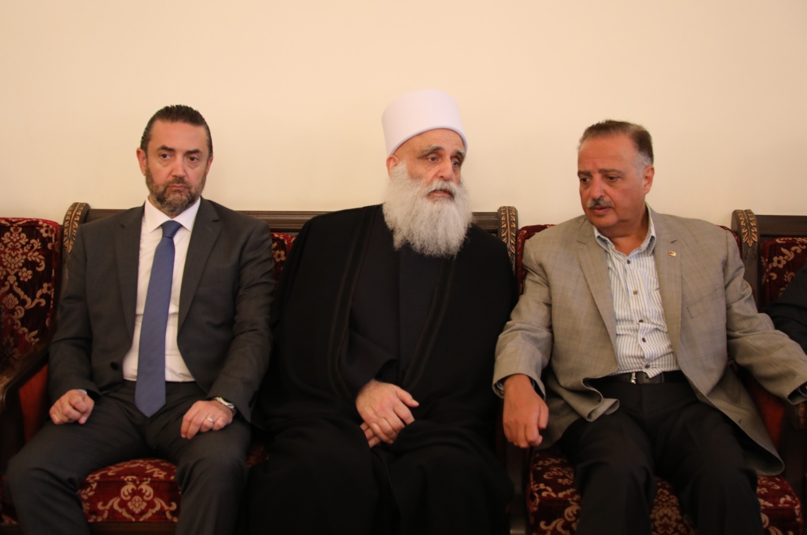 ورافق شيخ العقل وفد ضم، مشايخ ورؤساء لجان وأعضاء من المجلس المذهبي ومن مديريتي مشيخة العقل والمجلس المذهبي ومستشارين.