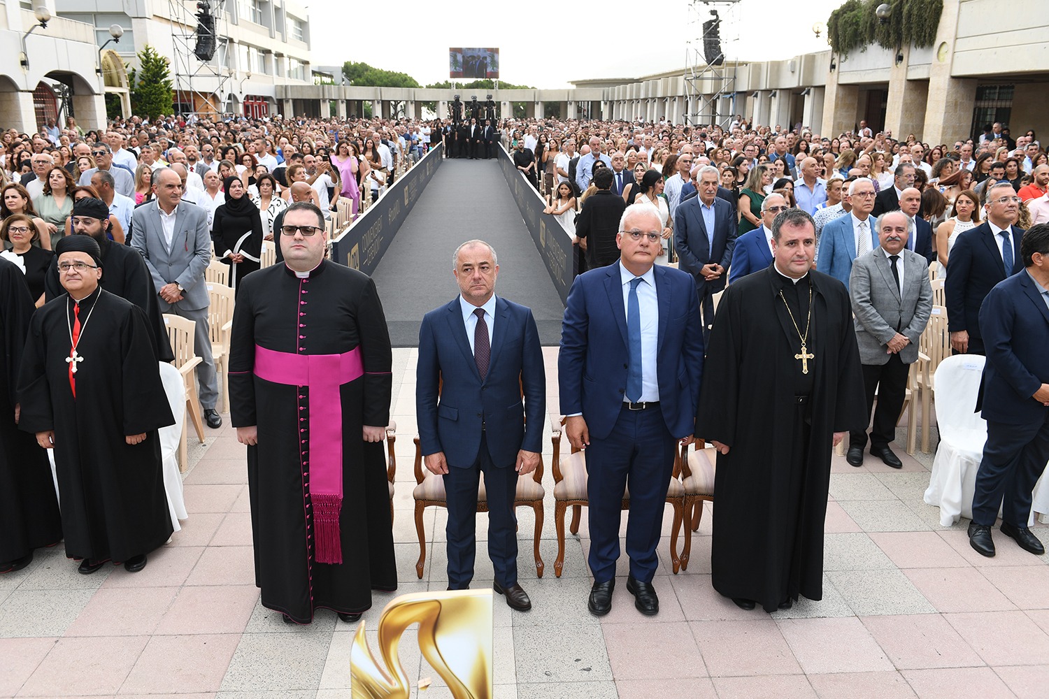 وأنهى البطريرك بشارة الراعي: ” أمام واقع التدهور المستمر وتناسل الأزمات، وجدت الجامعة نفسها أمام حتميّة المواجهة من خلال لعب دور الدولة الغائبة والمُغيّبة. صحيح ان هذا التدهور الوطني العام يشكّل خطرًا كبيرًا على مستقبل شبابنا، ولكن قطاع التعليم العالي لديه القدرة على لعب دور الدفاع والتحصين. إنَّ الجامعة هي صرحُ استقطاب لكلّ قطاعات المجتمع وتكاوينه، محليًا كان أم دوليًا، وهذا يجعل منها رافعةً أساسية للوطن. شبابنا، اليوم انتم والوطن على مفترق أساسي ومفصليّ، قرارنا معكم نهائي وناجز، لبنانُنا هو لنا، لا مساومة على هويّته وكيانه، فكونوا من أهل الثقة انَّ جامعكتم وكنيستكم هي الى جانبكم على الدوام. سِلاحَكم العلم، الكلمة، المُثابرة، القرار، الحوار والتلاقي”.