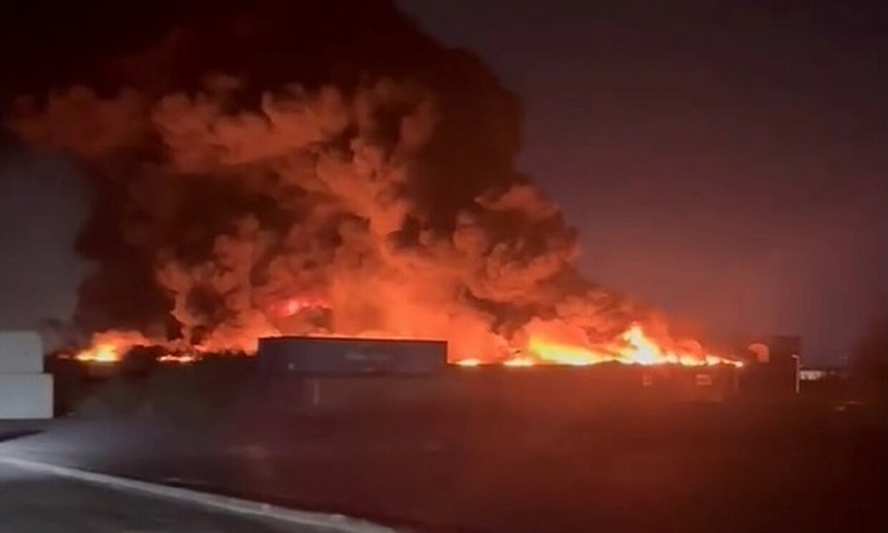 إندلع حريق هائل في مخزن للإطارات بمنطقة تاجوراء في ليبيا.