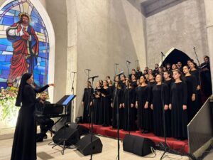 ‎و بعد الانجيل المقدس، ألقى المطران بو نجم عظة قال فيها:” بفرح كبير نلتقي في هذه الكنيسة للمرة الثانية، ففي العام المنصرم احتفل غبطة أبينا البطريرك الكاردينال مار بشارة بطرس الراعي، بتدشينها، واليوم نلتقي سوياً لنعيّد عيد السيّدة العذراء، شاكراً مشاركة جوقة فيلوكاليا وحضور الاخت مارانا، واصفاً هذا الحضور بأنّه يذكرّنا في السماء.