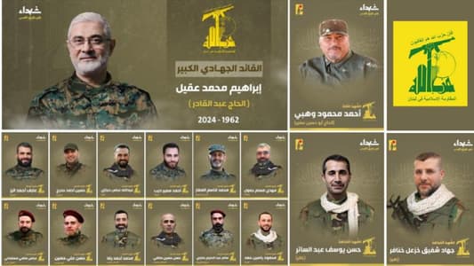 نعى “حزب الله” 16 شهيدًا من عناصره في الغارة الإسرائيلية على الضاحية الجنوبيّة وعلى رأسهم القيادي إبراهيم عقيل.