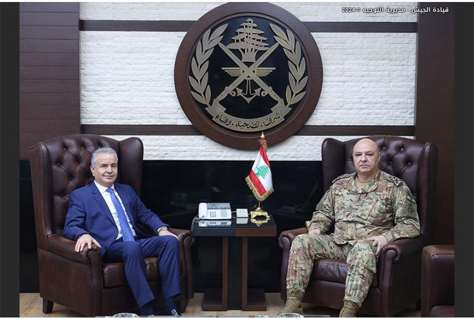 استقبل #قائد_الجيش_العماد_جوزاف_عون في مكتبه في اليرزة النائب أسعد درغام، وتناول البحث الأوضاع العامة في البلاد في ظل #العدوان_الإسرائيلي المستمر على #لبنان ودور #الجيش في حماية السلم الاهلي.
