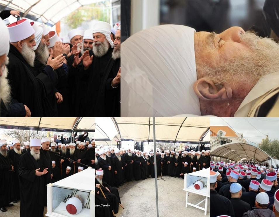 وتابع: نودِّعُه اليومَ وفي القلب غصّة وفي العين دمعة، كيف لا؟ وهو ذلك الوجهُ الصَّبوحُ البشوشُ الذي كنَّا نطمئنُّ دائماً إليه ونُلقي همومَنا بين يديه، وهو ذلك العقلُ الراجح الذي كان كبارُ مشايخِنا يركنون إلى رأيه السديد ونظره البعيد، وذلك القلبُ الجسورُ الصابرُ على المرض والألم الذي كنَّا نتعلَّمُ من نبضاته حقيقةَ معنىالشكرِ والحمد والرضا والتسليم. وهو ذلك الشيخُ العارفُالواثقُ المشهودُ له بسلامة النيّةِ وطهارة الطويّة، وقد كان موئلاً صالحاً للطالبين، ومرجعاً ناصحاً للسالكين، وملجأً دافئاً للقاصدين. مشايخَنا الأجلَّاء، إخوانَنا الأعزّاء، عائلةَ منذر الكريمة، أقاربي آل سريِّ الدين، أهلَنا في بزبدين، إنّنا في مقام مشيخة العقل إذ ننعى شيخَنا الحبيبَ إلى جَمع الموحِّدين، وإذ نعبِّرُ عن بالغ الحزن والأسى، فإننا لا نزيدُه منزلةً عند خالقِه، ولا نهبُه رفعةً عند إخوانه وعارفيه، فمقامُه محفوظٌ في سجلّ الأولياء الصالحين وعملُه محفورٌ في قلوبِ إخوانِه الموحدين، والكلُّ يُدركُ أنّ زارعَ الخير يلقَ الخير، وأن السيرةَ الطيِّبة تبقى مدرسةً للأجيال، تنطقُ بالحقِّ وتقولما يجبُ أن يقالَ في الشيخ سلمان وفي أمثالِه من التُّقاة الثِقات. شيخَنا الحبيب، تقفُ شهادتُنا الصادقةُ بكم عند حدود ما تكرَّمَ به مشايخُنا الأصفياءُ صبيحةَ هذا النهار، بتتويجِكم بالعمامة “المُدوَّرة” من يدِ شيخِنا الجليل الشيخ أبي صالح محمد العنداري والشيخ أبي فايز أمين مكارم وأيدي المشايخ الأطهار وقلوبِهم النقيَّة التي رافقتهم من قريبٍ ومن بعيد. تلك هي الشهادةُ الأرفعُ، منها نستمدُّ البركةَ، ولروحكم نسألُ الرحمةَ، قائلين ما قلناه لصهركم الجليل المرحوم الشيخ أبي سليمان حسيب الحلبي يوم تتويجه المستحقِّ بها: زَهَتِ العِمامةُ بالمُعَمَّمِ عندما ﭐعتمرَ التُّقى من قبلِ أن يَتعمَّما بلطافَةٍ وبعِفَّةٍ، بصفائه لَبِسَ الصفاءَ، كما البهاءُ، مُكرَّما فابيضَّ منه التاجُ مثلَ فؤادِه والوجهُ مثلَ الثَّغرِ نوراً تَمتَما”.