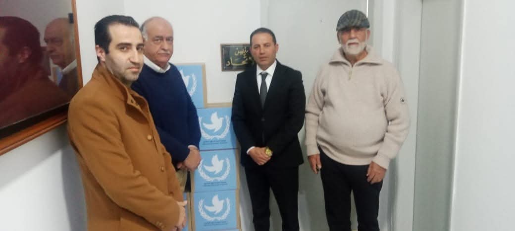 في الختام، سلم السفير غملوش واعضاء الجمعية المرافقين هبة الأدوية الى رئيس الاتحاد الذي كرر شكره للسفير غملوش ولجمعية تنمية السلام العالمي على هذه اللفتة الانسانية.