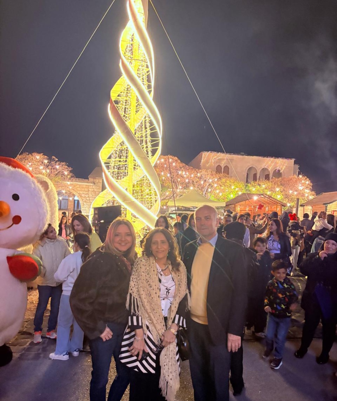 تميّز الحفل بأجوائه الدافئة رغم برودة الطقس، وبلحظة مهيبة تمّت إضاءة شجرة العيد الضخمة التي ارتفعت شامخة في وسط الساحة، مزدانة بالألوان والأضواء التي عكست نور الأمل في زمن يحتاجه الجميع.