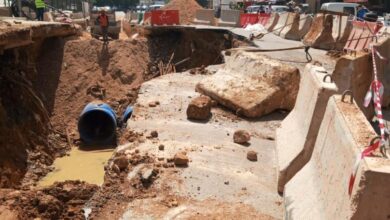 قطع طريق كفرشيما باتجاه الشويفات بسبب انخساف الطريق وتحويل السير باتجاه الطرقات الفرعية