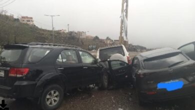 تصادم بين 3 مركبات على الطريق الدولية في صوفر نتج عنه 5 جرحى