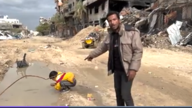 شاهد: طفل في غزة يشرب مياه الأمطار من على الأرض (فيديو)
