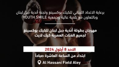 ، ينظّم الاتحاد اللبناني للكيك بوكسينغ مهرجان بطولة أندية جبل لبنان ، بطلب من جمعية Youth smile وبالتعاون مع لجنه…