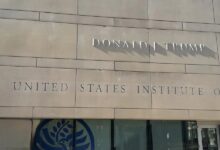 اسم “دونالد ترامب” على واجهة مبنى المعهد الأميركي للسلام